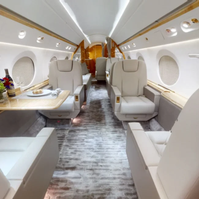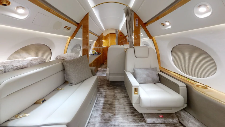 The Gulfstream GV is a long-range business jet offering exceptional performance, comfort, and range. With a top speed of Mach 0.85 and a range of up to 6,500 nautical miles, it’s ideal for nonstop intercontinental travel. The spacious cabin seats up to 14 passengers and includes luxury features like sleeping arrangements, a full galley, and Wi-Fi. Perfect for executive and VIP missions.